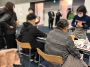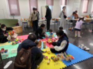 世界のボードゲームやカードゲームを用意していただき、木のおもちゃにもたくさん触れ合えるこの場所は、とてもにぎわっていました!